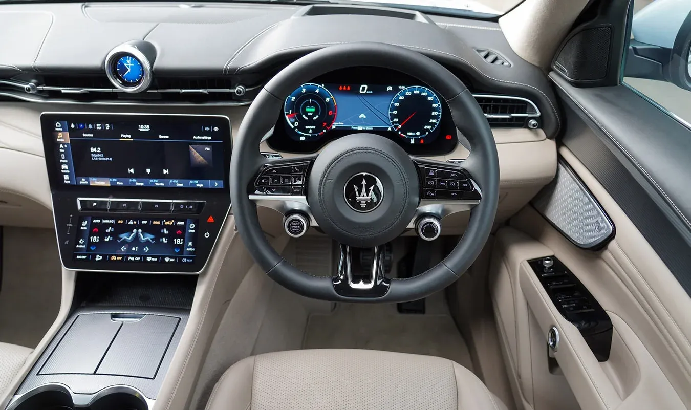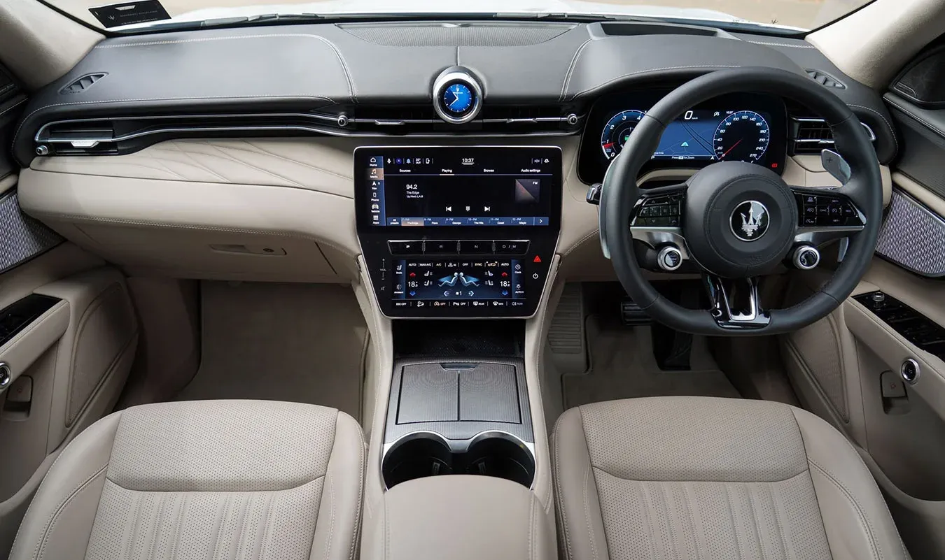 Under its sculpted hood, the GT houses a powerful 2.0-liter Turbo Hybrid engine, generating an exhilarating 300 horsepower. Paired with an eight-speed automatic transmission and Maserati’s intelligent Q4 all-wheel-drive system, the Grecale GT delivers dynamic handling and precise control, effortlessly conquering any terrain.